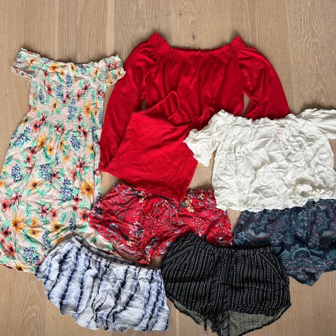 Selger en liten klespakke med sommerklær da de ikke brukes. Alle plaggene er i størrelse XS. Pakken inneholder: