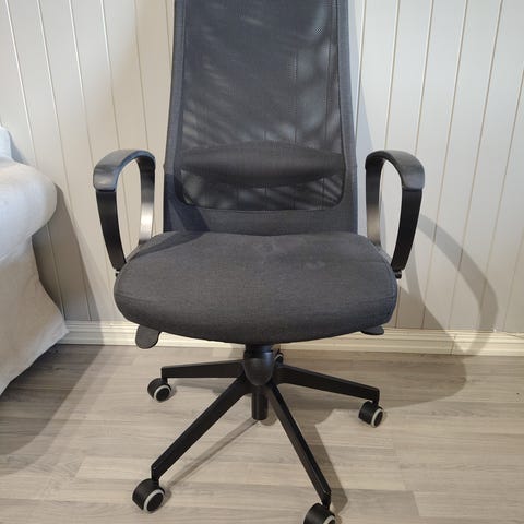 Kontor stolen fra IKEA Markus. Denne er godt brukt, men kan brukes mye igjen.