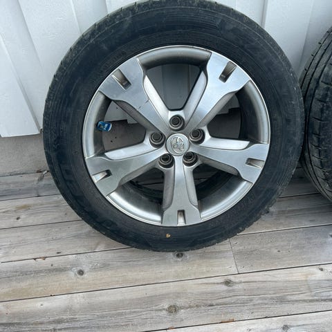 Felgene fra Mitsubishi Outlander følger med. De har noe kosmetisk slitasje, men fungerer som de skal og påvirker ikke bruken. Tror at de kan vaskes lett så ser de som ny ut.