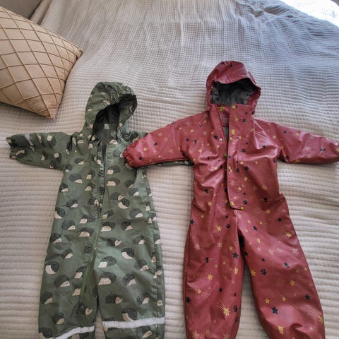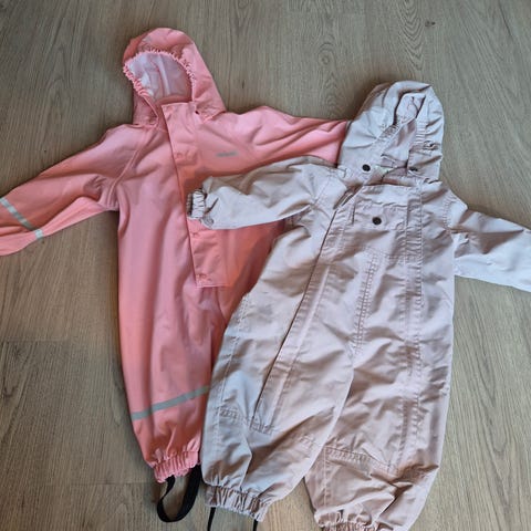 Softshelldress, regndress og vinterbukser, størrelse 110