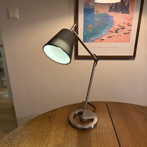 Industriell bordlampe i sort metall – justerbar, varm belysning