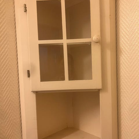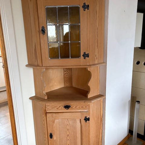 Selger ett hjørneskap som er meget pent brukt,stått på fjellhytte i flere generasjoner. Min tanke har vært ev beise/el lignende,men da jeg nå ommøblerer litt,tenker jeg andre kunne hatt glede av det . God kvalitet med fine beslag,og ingen synlige skavanker! Står pr nå på hytte i Valdres,og ev henting eller frakt retning Bærum avtales!