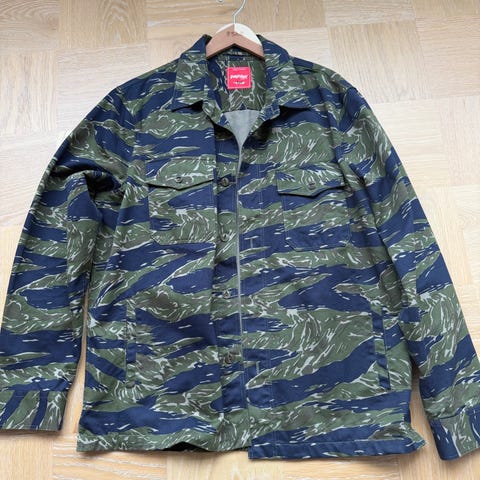 Veldig kul kamuflasjejakke. Er vintage men i helt fin stand. Står ikke størrelse, men vil si M eller L