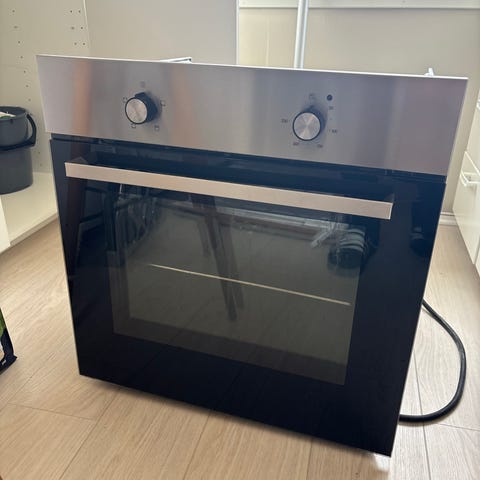 Ovn selges billig da jeg har kjøpt ny, funker som den skal. Klistremerkene for temp og de andre er gått av men har bilde av hvor de skal være og finnes nye klistermerker billig på nett! Blir grundig vasket før levering!😊