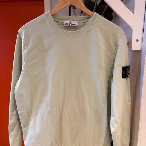 Stone Island genser for herre i størrelse M. Genseren er hvit og laget av bomull. Klassisk rund hals og lang erm, med Stone Island-logo på ermet. Passer til hverdagsbruk og kan kombineres med både jeans og andre bukser for et enkelt og nøytralt uttrykk. Helt ekte Stone island genser kjøpt på høyer i Trondheim, kvittering kan sendes med genseren hvis det er ønskelig. Stilig genser uten bruksmerker og fargen er akkurat som ny. Ny-pris ligger på 3200kr. Så her gjør man ett kupp