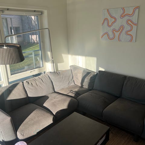 Skikkelig brukt hjørnesofa.
