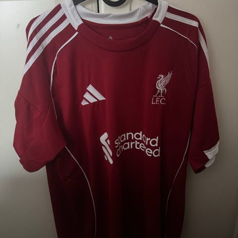 Adidas Liverpool FC fotballdrakt i hvit med røde detaljer. Drakten har klubbemblem på brystet og sponsorlogo på fronten. På ryggen står navnet «RIO» og nummer 73. Kortermet modell med rund hals. Egnet som supportereffekter eller til bruk ved fotballtrening og fritid.