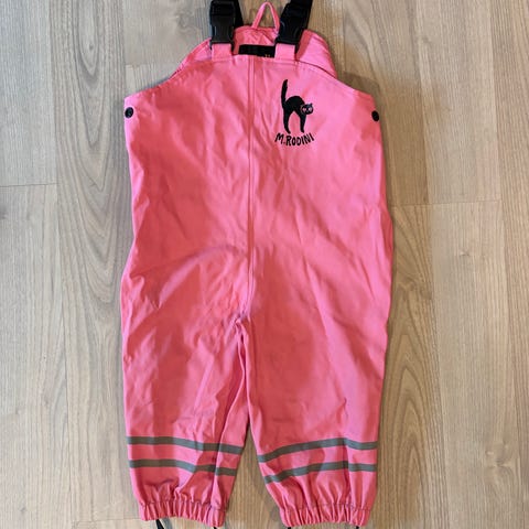 Wheat regnbukse i størrelse 80. Buksen har et flerfarget blomsterprint på lys bunn. Justerbare seler med plastspenner gjør at lengden kan tilpasses barnet. Buksen har strikk nederst i bena for bedre passform rundt anklene.
