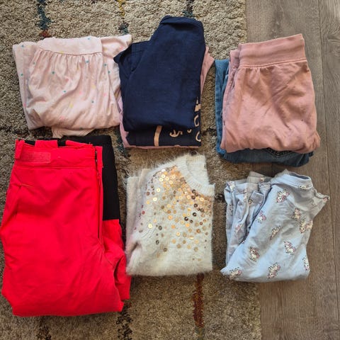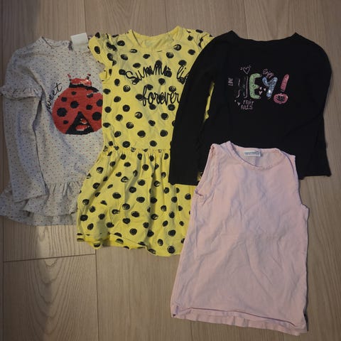 Adidas barneklær for jente i størrelse 116. Klærne er i flere farger. Egnet som hverdagsklær til barn i tilsvarende høyde/størrelse.