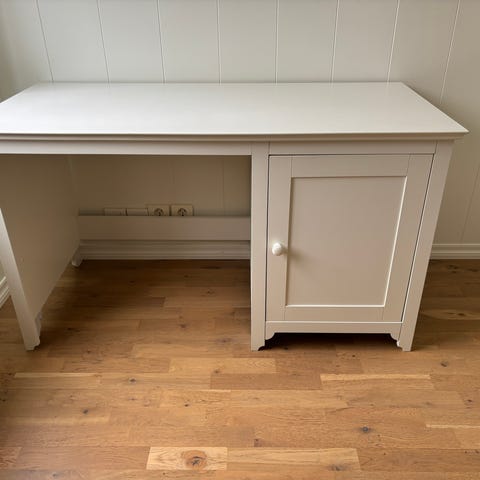 Skrivebord hvit med skuffer og kabelhull