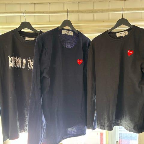 Sønnen vår rydder klesskapet sitt og selger T-skjorter som han ikke lenger bruker. Alle er i str M.