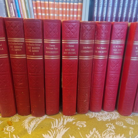 Bøkene er pene og hele, noe bretter og små flekker på enkelte av bøkene.