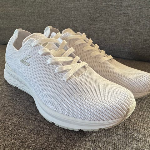 Levity sneakers joggesko i størrelse 38. Modellen er i en lys beige farge med overdel i pustende tekstil/mesh og snøring foran. Skoene har kraftig, mønstret yttersåle i syntetisk materiale for godt grep. Polstret hælkappe og pløse for økt komfort. Nøytral modell som passer til hverdagsbruk og lett aktivitet.