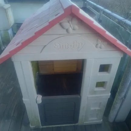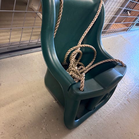 Gir bort en huske som henger ute. Alt ok med den!