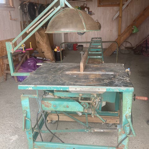 3-fase Gjerdesag med sidebord selges. Alltid lagret innendørs.