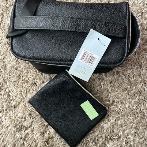 toalettmappe i svart stoff for unisex. Modellen har flere glidelåslommer og rom som gir god oversikt over innholdet. Praktisk håndtak på siden gjør den enkel å bære eller henge opp. Egnet til oppbevaring av toalettartikler og småting på reise eller hjemme.
