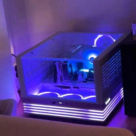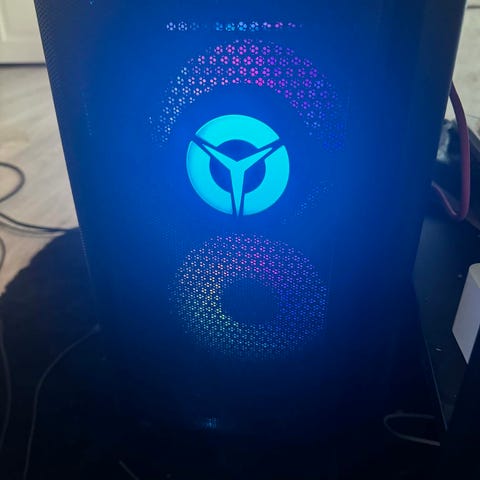 Toshiba stasjonær PC. Kabinett med gjennomsiktig sidepanel og RGB-belysning. Egnet som skrivebords-PC til generell bruk, avhengig av innvendige komponenter som prosessor, minne og lagring som ikke er spesifisert her.