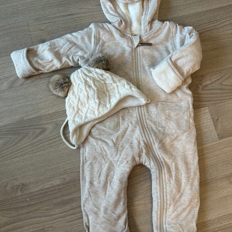 Reflex dress for baby i størrelse 62 i beige farge. Dressen har hette med motiv, glidelås foran og oppbrettbare kanter ved ermer og ben. Mykt og behagelig materiale egnet til bruk i barnevogn eller til hverdagsbruk.