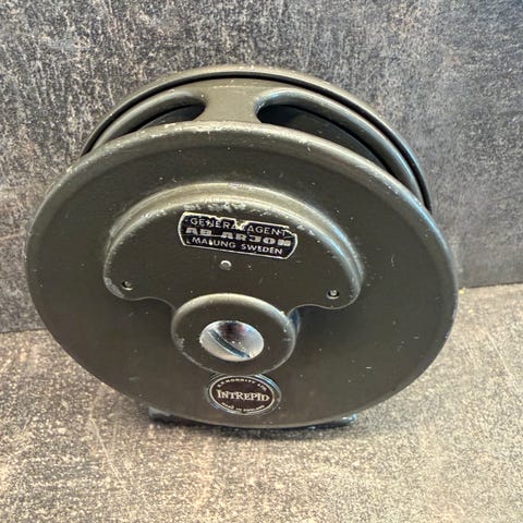Selger en sjelden klassiker fra Oslo-baserte Haakon H. Finestad. Dette er Modell "Sjø-Ørre", en robust og flott fluesnelle i den ikoniske grå hammerslåtte lakken.