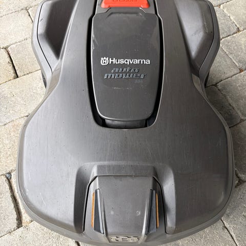 Robotklipperen har gjennomgått en rengjøringstjeneste. Den fungerer som den skal og er klar for kommende sesonger. Robotklipperen har bare noen få driftstimer.