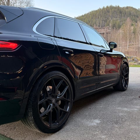 4 originale Audi felger uten noen skader eller riper. Felgen heter 5-eker Aeromodul sort/blankpolert. På felgene sitter Pirelli P7 sommerdekk. Dimensjon 245/45 foran og 286/40 bak. Mønsterdybde foran er 4mm, bak 3,5mm. Hjulene har sittet på en 22 mod e-tron GT, kjørt 28.000km.