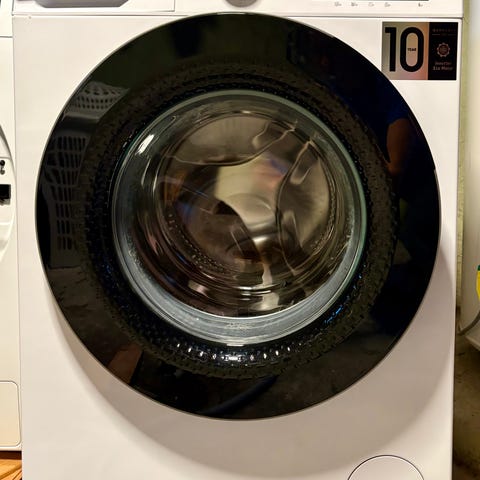 Vaskemaskinen ble kjøpt slutten ved juletiden ifjor men da flyttet leietakeren og den ble ikke brukt og stått ubrukt siden.