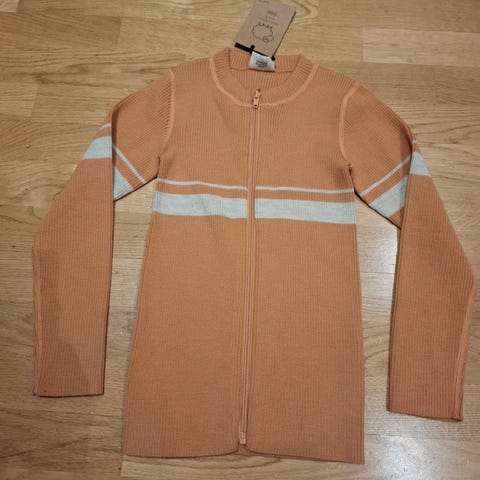 Voksi genser i ull for jente i størrelse 122/ 128.Genseren er rød med mønster og har knappestolpe øverst. (En knapp knakk) Materialet er ull, som gir et mykt og varmt plagg egnet til hverdagsbruk og som mellomlag på kjølige dager.