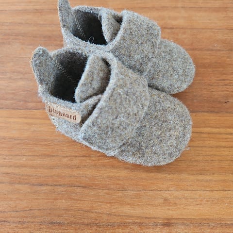 Bisgaard tøfler for barn i størrelse 21. Tøflene er laget i grå ull med myk og fleksibel såle med gummidetaljer for bedre grep. Modellen er unisex og passer både til jenter og gutter. Lukkes med borrelås over vristen for enkel av- og påkledning. Egnet som innesko eller tøfler hjemme eller i barnehage.