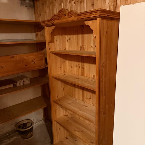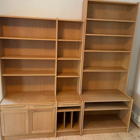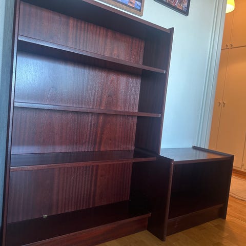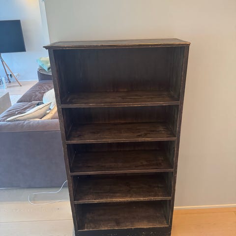 Mørk brun hylle som kan deles så det blir to lave hyller. Har også en til om du vil ha en høy hylle. Må hentes og bæres ut.