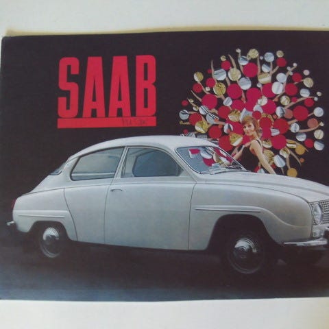 Saab 96 bilbrosjyre selges kr 350,- inklusiv frakt.