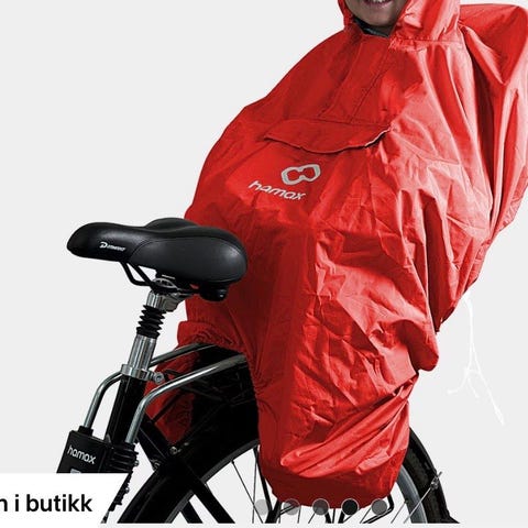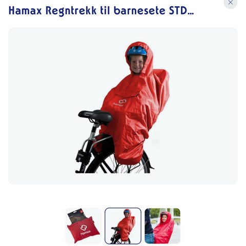 Passer helt rundt barnet og Hamax-sykkelsetet, slik at det ikke blir noen mellomrom