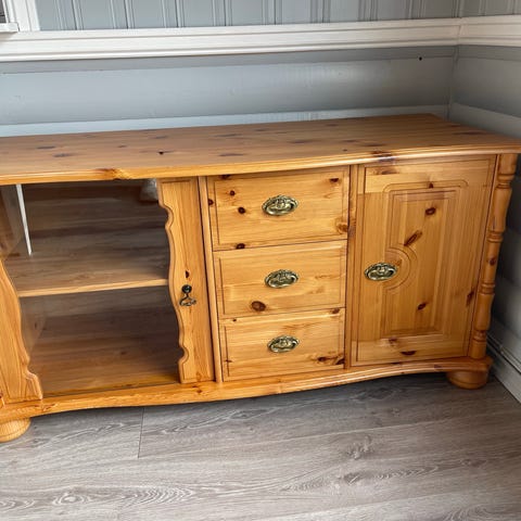 Gedigen skjenk i eik gis bort mot henting. Ett bein er falt og må monteres. Enkel jobb.
