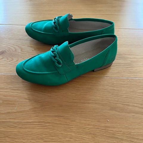 Kun brukt en gang. Rieker mokkasiner i størrelse 38. Skoene er i en beige fargetone med preget mønster på overlæret og dekorativ lenkedetalj i metall over vristen. Kraftig, mønstret yttersåle i syntetisk materiale gir godt grep. Innvendig fôr og såle er laget for komfort ved hverdagsbruk. Modellen passer som pene hverdagssko eller til mer avslappede antrekk. Ny pris 999kr