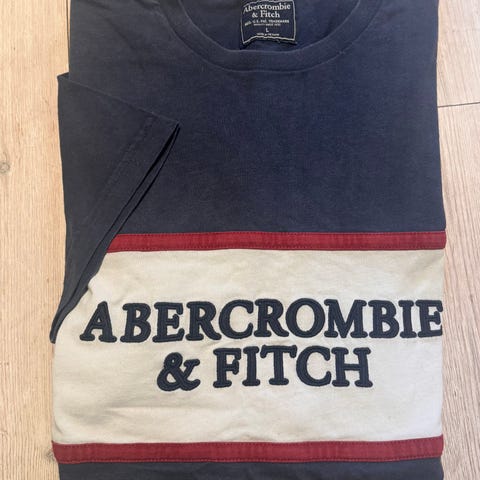 Abercrombie & Fitch t-skjorte for herre i størrelse M. T-skjorten er svart og laget av bomull. Klassisk modell med rund hals og kort erm. Stor Abercrombie & Fitch-logo med tekst på brystet, ensfarget bakside. Passer til hverdagsbruk og kan kombineres med både jeans, shorts og joggebukse.