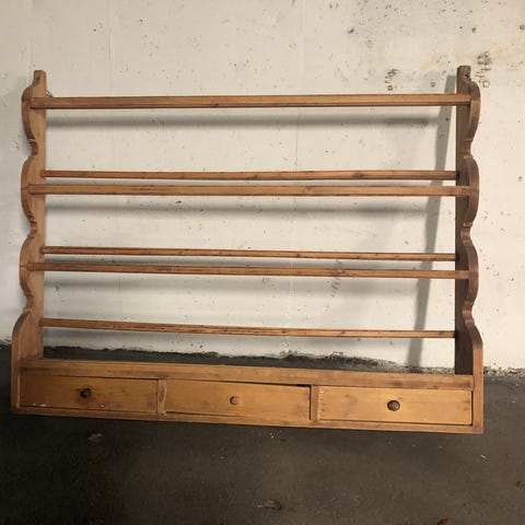 Tallerkenhylle: Brukes til utstilling av dekketallerkener eller rosemalte fat.