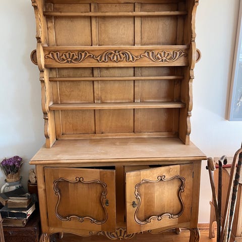 Hylla er i god stand og gir et klassisk og koselig preg til rommet.