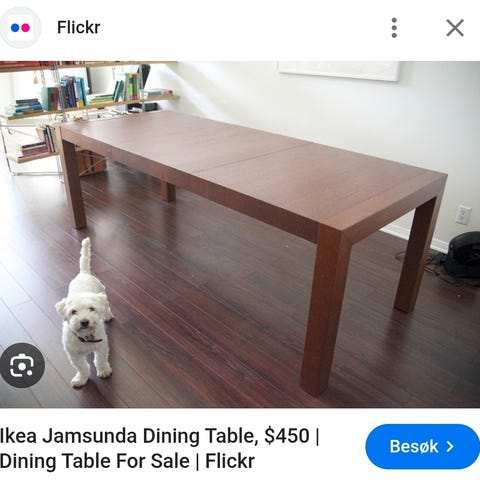 Et par skraper (bilde) , men allikevel et fint bord. Føttene er malt hvite av meg, mens bordplaten er original.