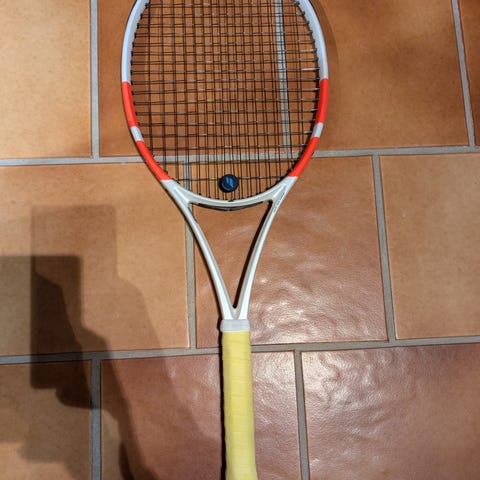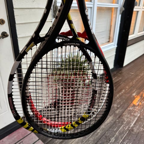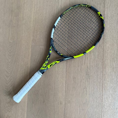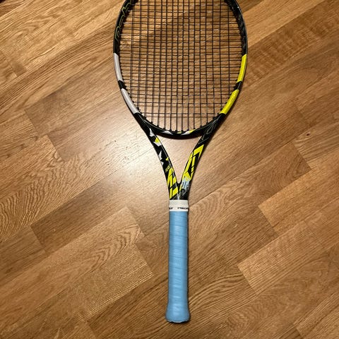 Babolat Pure Drive tennisracket i blå farge. Racketen har standard strenget mønster og hvitt grep. Passer til spill på tennisbane for spillere som ønsker en allround racket til trening og kamp. Egnet for voksne eller eldre ungdommer avhengig av høyde og styrke. Racketen leveres ferdig strenget slik den fremstår på bildene. To helt like babolat racketer.