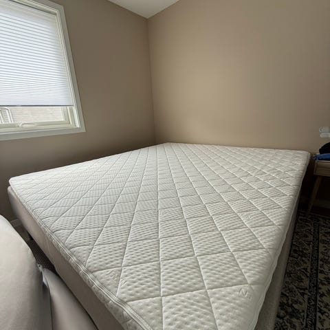 Selger en komfortabel og lite brukt seng med tilhørende overmadrass grunnet flytting. Sengen ble kjøpt høsten 2024, og overmadrassen er fra høsten 2025.