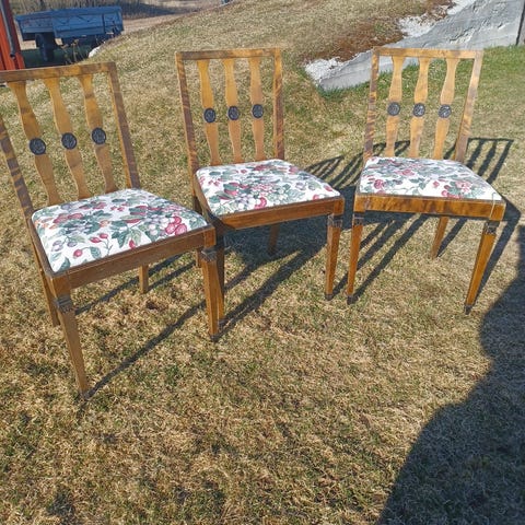 Selger en stol for kr. 50,- pr. stk eller alle 4 stolene for kr. 170,- til sammen.