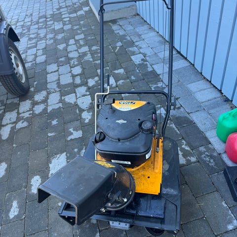 Liten og hendig vibroplate/komprimator med bensinmotor fra 2024.Kan ikke være mye brukt. Starter og går fint. Transporthjul til å brette sammen under.