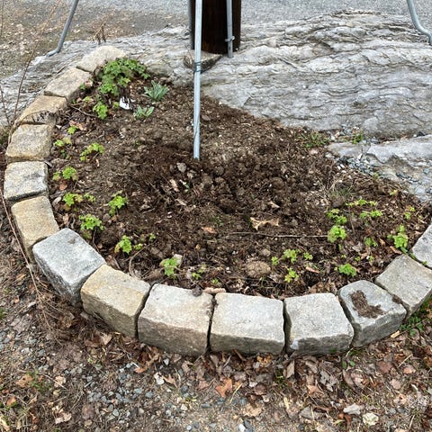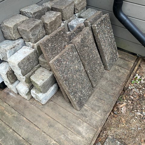 Kantstein for utendørs bruk. Vært brukt til et blomsterbed, men kan også brukes til andre hageprosjekter. Leveres som på bilder.
