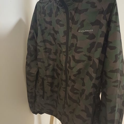 Amundsen jakke for herre i størrelse L. Jakken er grønn med kamuflasjemønster. Den har glidelås i front og høy krage. Egnet som ytterjakke til fritid og turbruk. Materiale er ikke spesifisert.