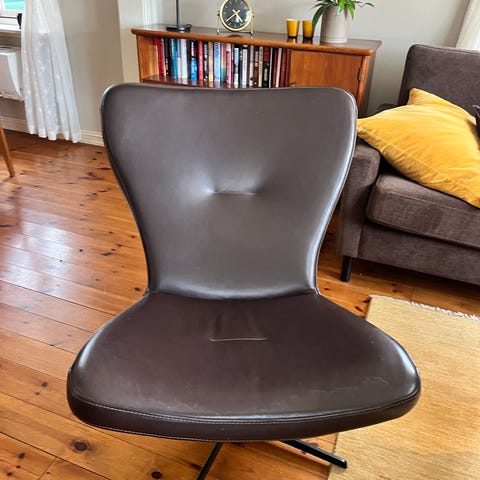 Lenestol i skinn selges. Noen bruksmerker som vist på bilder.