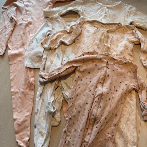 4 pent brukte pysjamaser fra Cubus og Newbie i nøytrale farger.