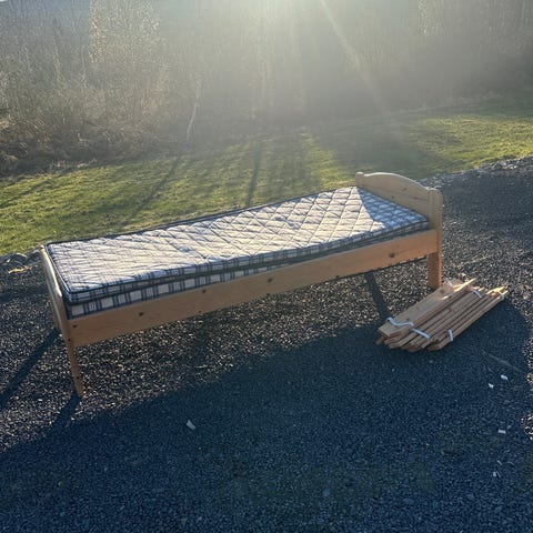 (Senga står hjemme hos min far)