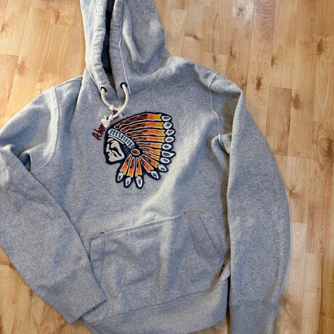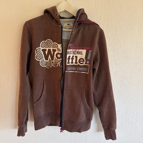 Abercrombie & Fitch hettejakke for herre i størrelse XXL. Jakken er rød og laget i 52%bomull 48%polyester.Den har glidelås i front, hette med snøring og ribbestrikket kant nederst og på ermene. To lommer foran. Brodert Abercrombie & Fitch-logo og emblem på brystet. Passer som hverdagsplagg eller til fritidsbruk.