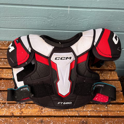 Ubrukt CCM Deluxe Support hockey susp med kopp for ishockey. Juniorstørrelse, beregnet for gutter/herre junior. Modellen har bred elastisk midjestrikk med CCM-logo og justerbare stropper bak for å holde suspensoriet på plass under aktivitet. Farge hovedsakelig svart med røde detaljer. Leveres med avtakbar beskyttelseskopp i front for beskyttelse ved ishockeyspill og annen kontaktidrett. Selges da det var et feilkjøp.