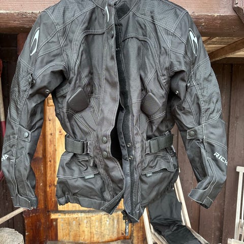 Settet er egnet som kjøreutstyr til motorsykkel, med jakke og bukse som kan brukes sammen som hel dress.