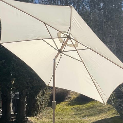Pen og stor parasoll 300x300 cm